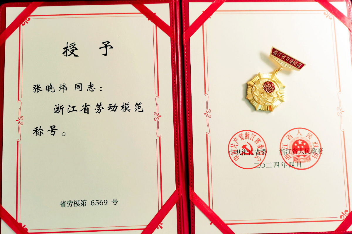 張曉煒榮獲“2024年浙江省勞動(dòng)模范”證書(shū)與勛章。 王洋 提供