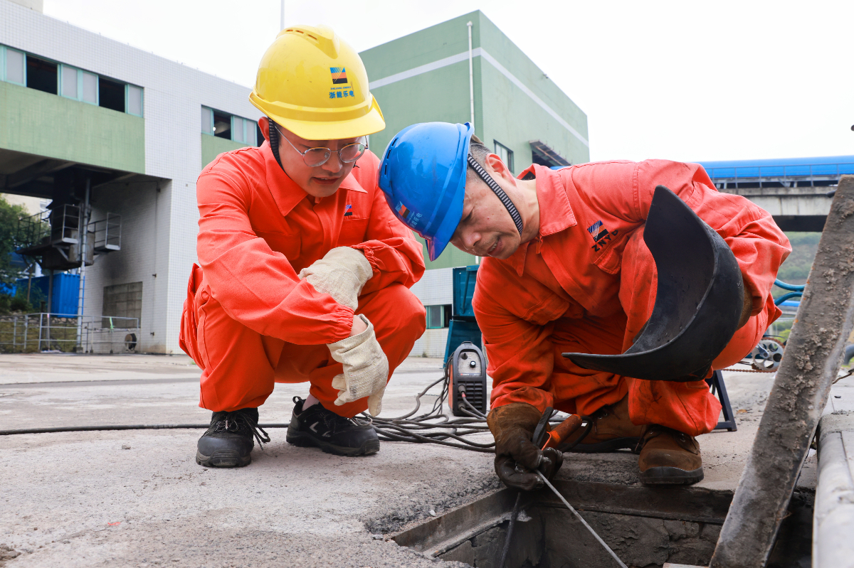 “補(bǔ)焊要先把鋼材打磨好,焊渣和煤渣都清理干凈,才能焊得牢靠。”在焊花四溢的焊接現(xiàn)場(chǎng),樂電燃料機(jī)務(wù)班的老師傅張文華正一步步指導(dǎo)徒弟牟來鴻進(jìn)行落煤筒焊接工作。這對(duì)“60后”與“90后”的師徒組合,又能在技能傳承上擦出怎樣的火花?