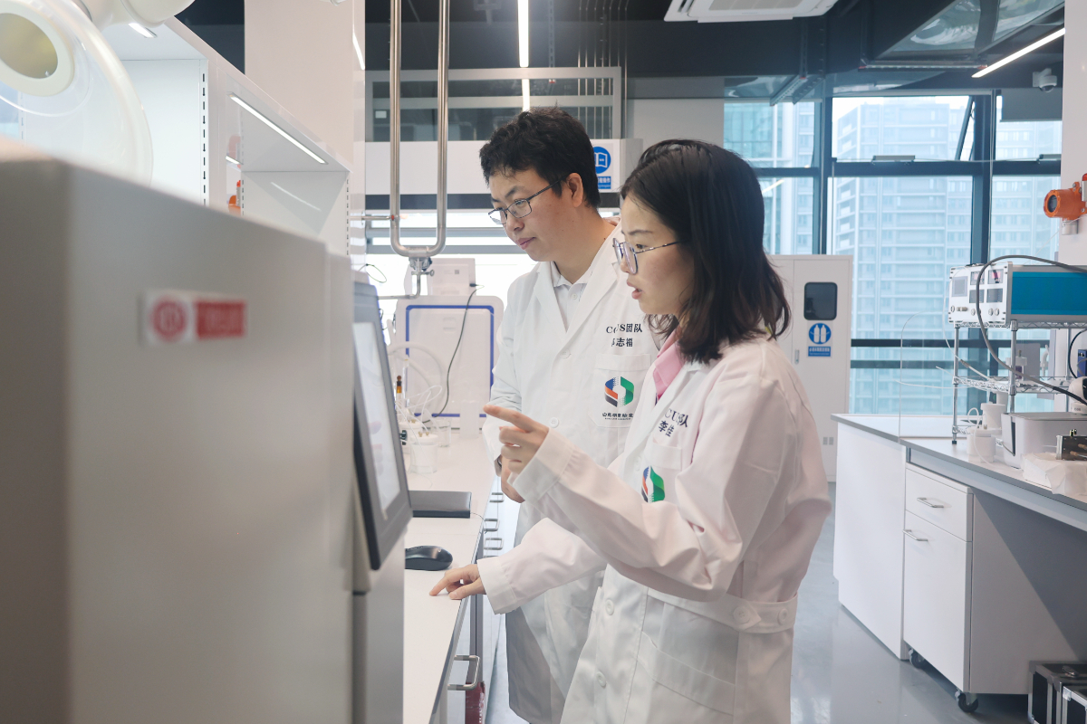 二氧化碳捕集及利用團隊的科研人員正在進行實驗。 白馬湖實驗室 提供