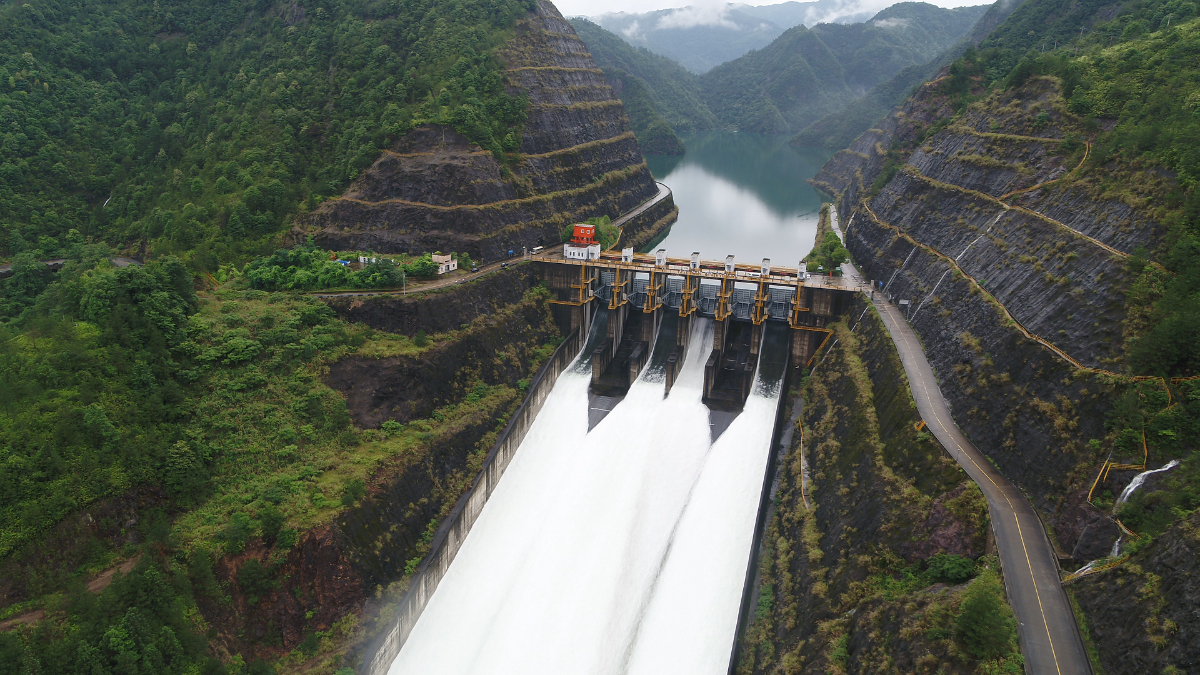 浙江新能灘坑水電站泄洪。 張翔 攝