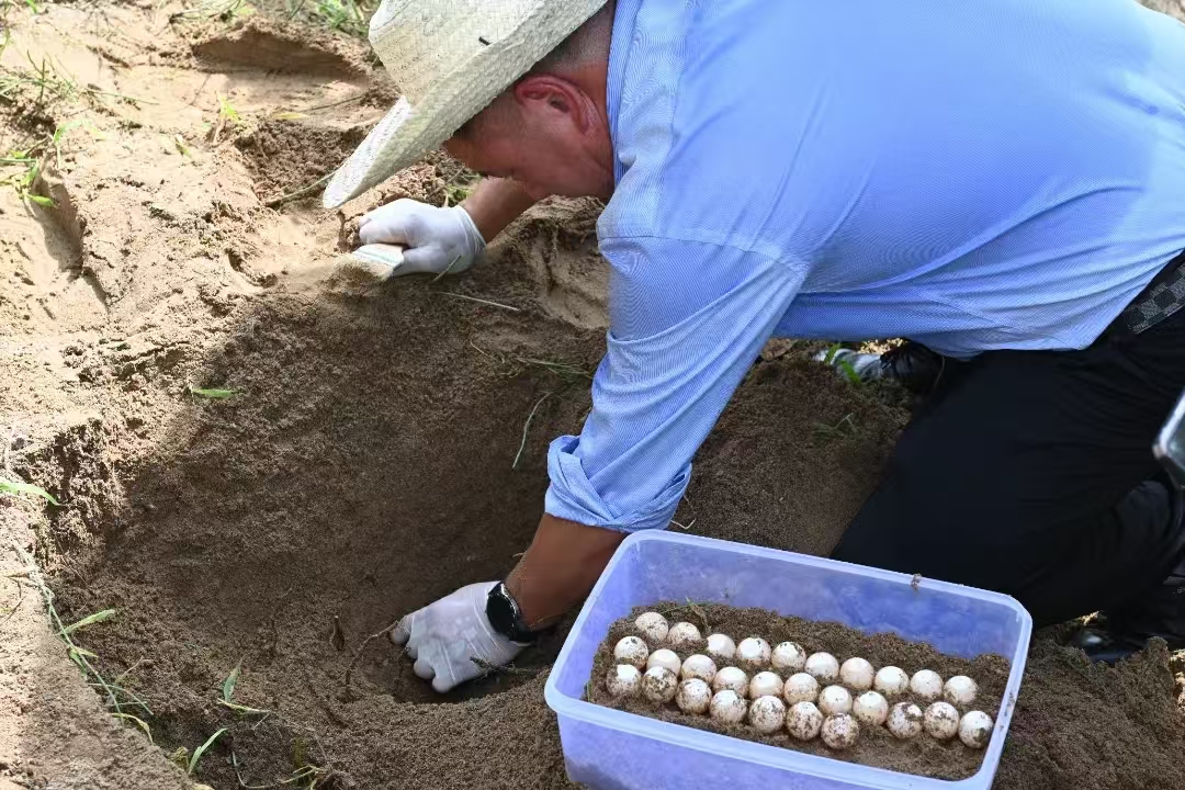 黿卵測(cè)量。 青田傳媒集團(tuán) 提供