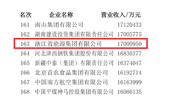 浙能集團榮列“2024中國500強企業(yè)”第163位