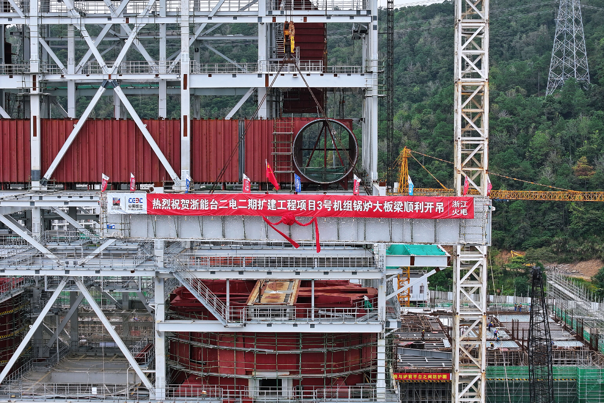 奮戰(zhàn)金秋,重大能源項(xiàng)目建設(shè)迎來新“豐收”。10月25日,浙能臺(tái)二電二期擴(kuò)建工程3號(hào)機(jī)組鍋爐首根大板梁順利吊裝就位,標(biāo)志著該機(jī)組鍋爐鋼結(jié)構(gòu)主體框架趨于完工,將進(jìn)入鍋爐受熱面設(shè)備安裝施工階段。
