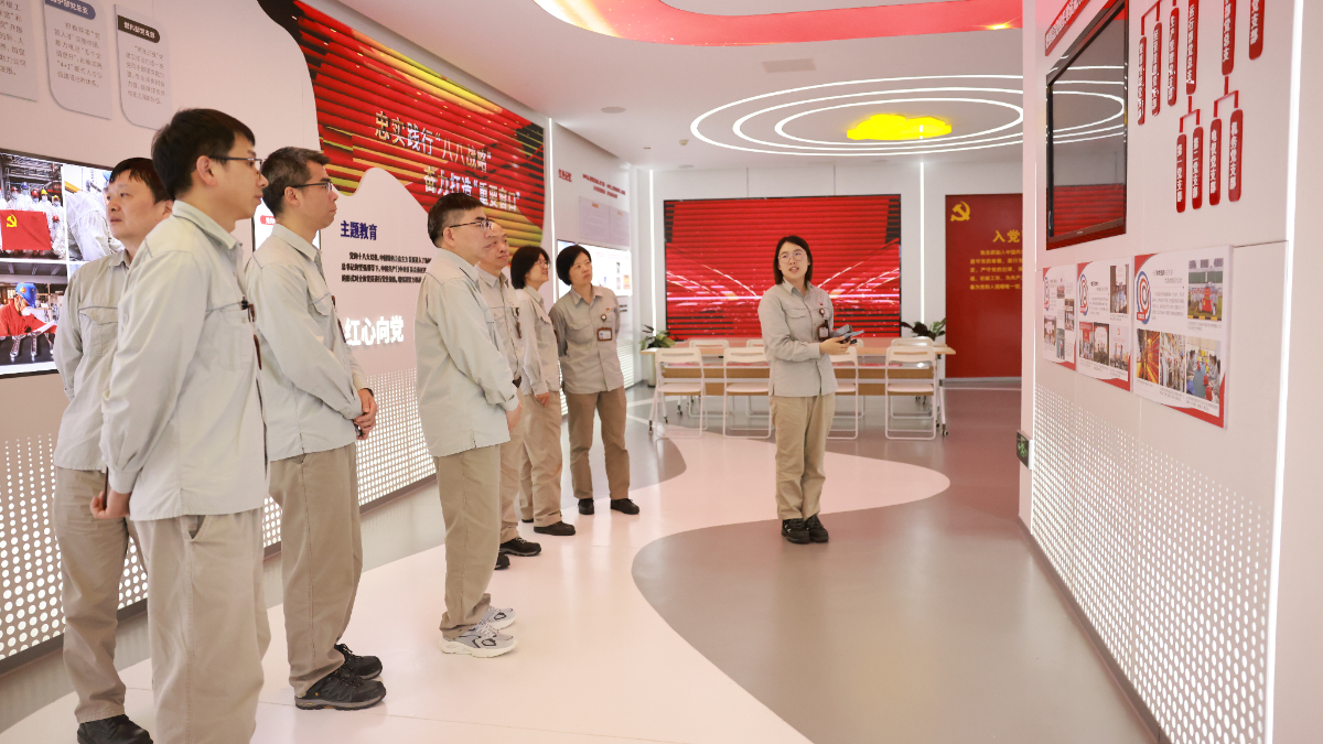樂電公司黨員在企業(yè)展廳聆聽發(fā)展故事,感受澎湃動能。 陳清瑜 攝