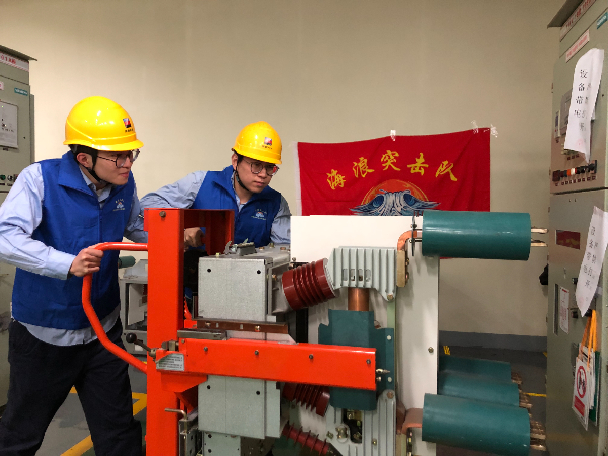 舟山煤電1號機(jī)C修現(xiàn)場,“海浪突擊隊(duì)”成員協(xié)助隔離組完成10千伏母線1B段復(fù)役工作。 鄒咪咪 提供