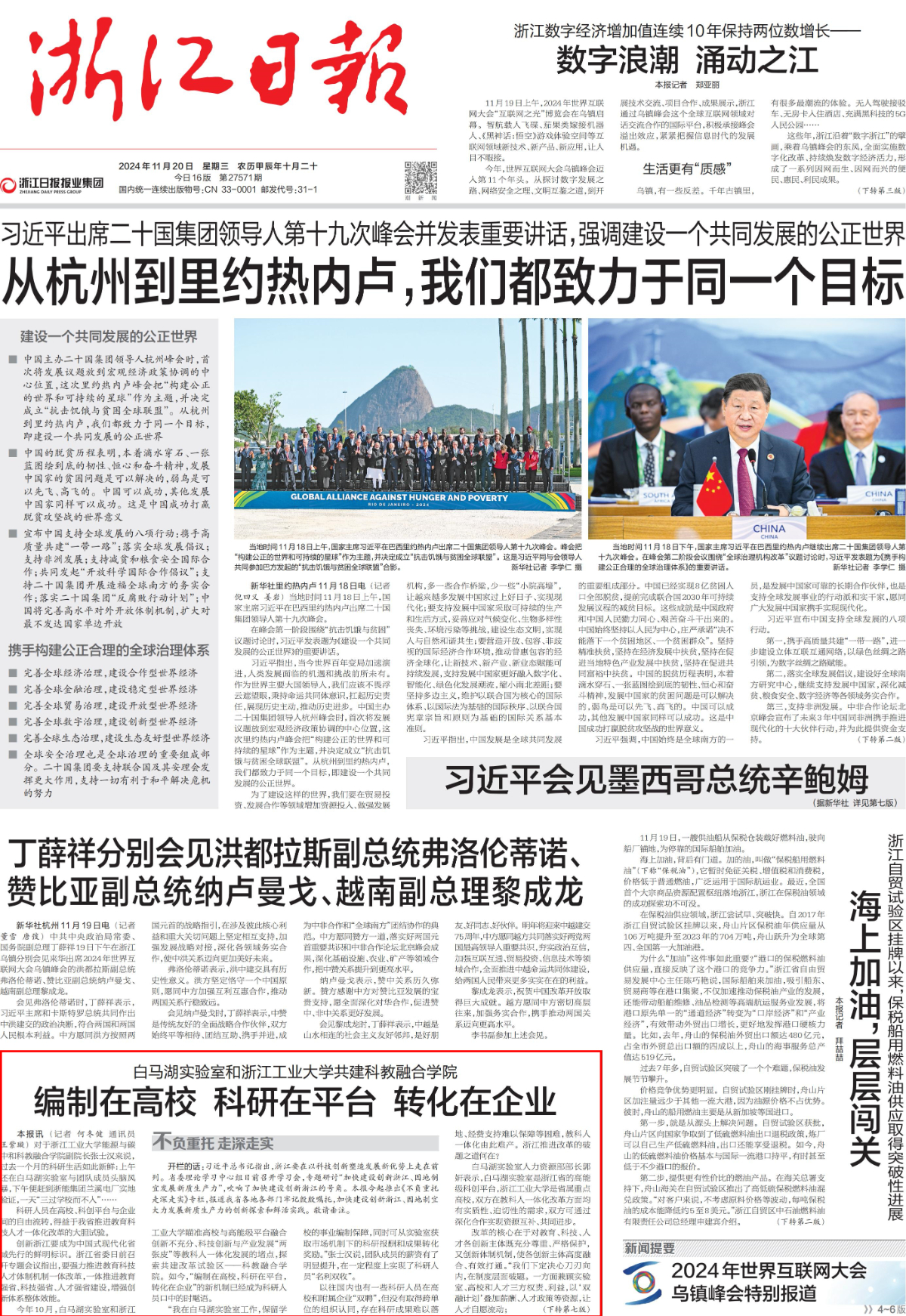 11月20日,《浙江日?qǐng)?bào)》頭版聚焦白馬湖實(shí)驗(yàn)室和浙江工業(yè)大學(xué)共建科教融合學(xué)院《編制在高校 科研在平臺(tái) 轉(zhuǎn)化在企業(yè)》。(下轉(zhuǎn)第七版)