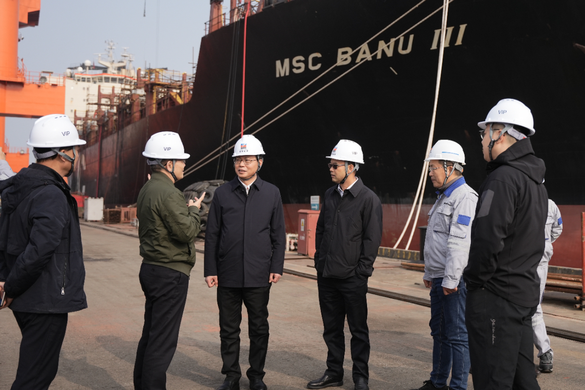 集團(tuán)黨委書記、董事長(zhǎng)劉盛輝深入浙能邁領(lǐng)船舶綠色改造維修基地等現(xiàn)場(chǎng)調(diào)研。 徐晶晶 攝
