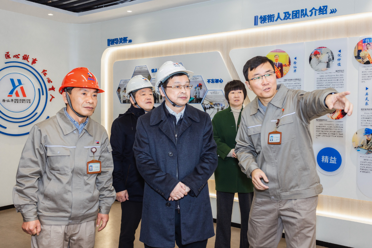 倪震一行到樂電徐仙華勞模(工匠)創(chuàng)新工作室參觀指導。 張立忠 攝