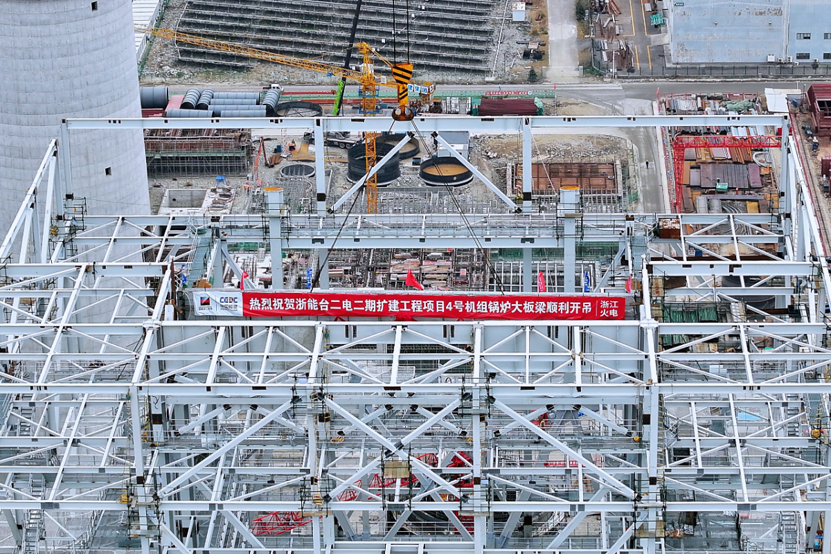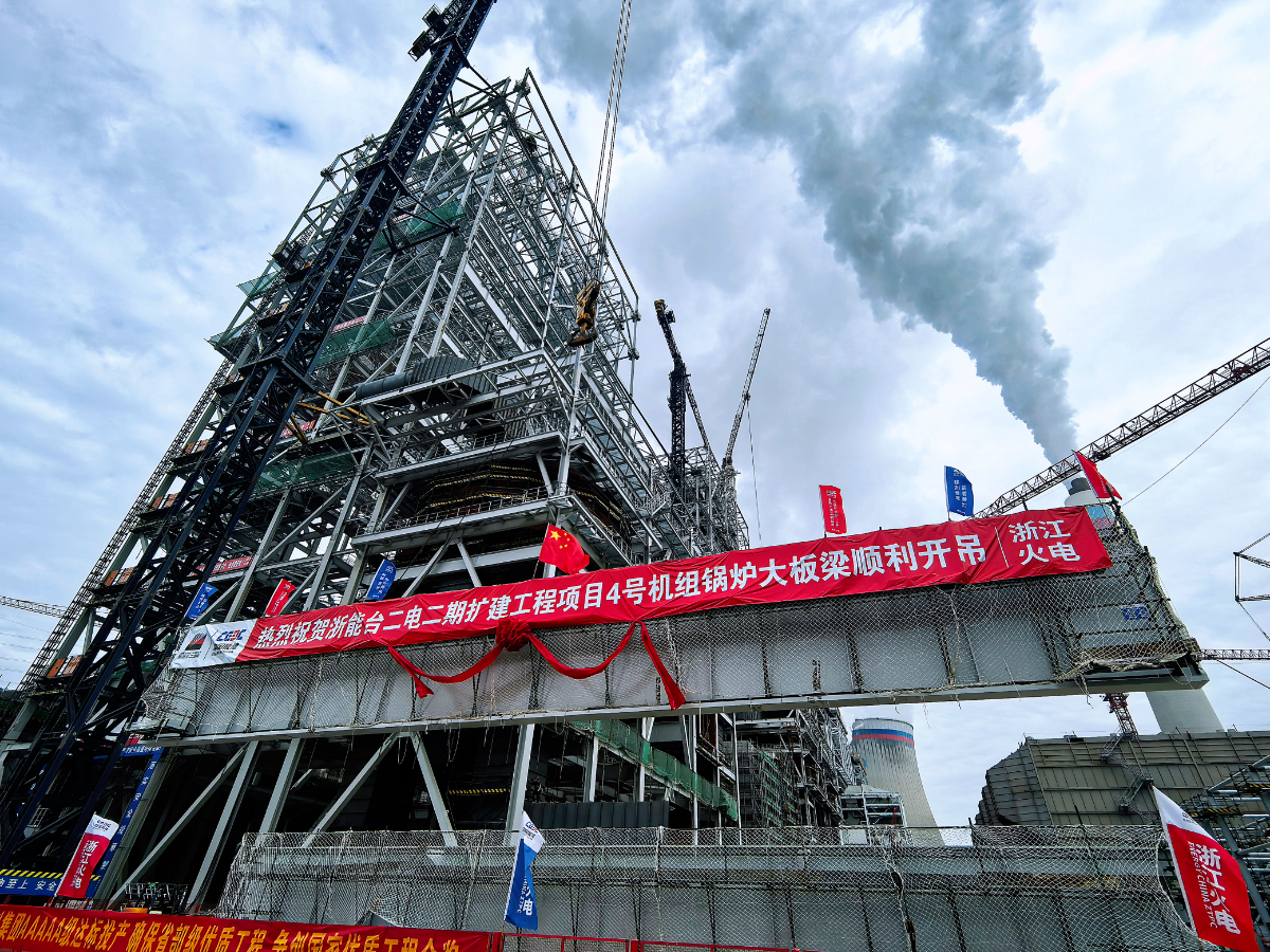 高質(zhì)量發(fā)展看“浙”里|臺(tái)二電二期擴(kuò)建工程項(xiàng)目4號(hào)鍋爐首根大板梁吊裝就位