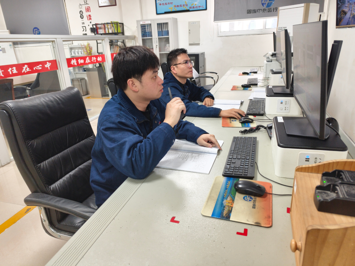 溫州天達固廢中心運行班組班員正在工作。 傅催然 攝