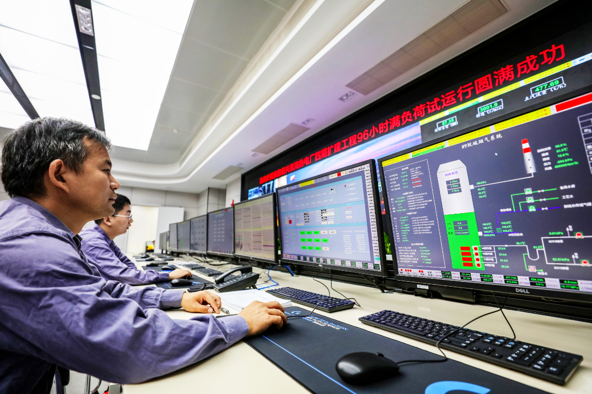 浙能濱海熱電運行操作員在項目9號機組168試運行期間認真監(jiān)盤。 徐明敏 攝