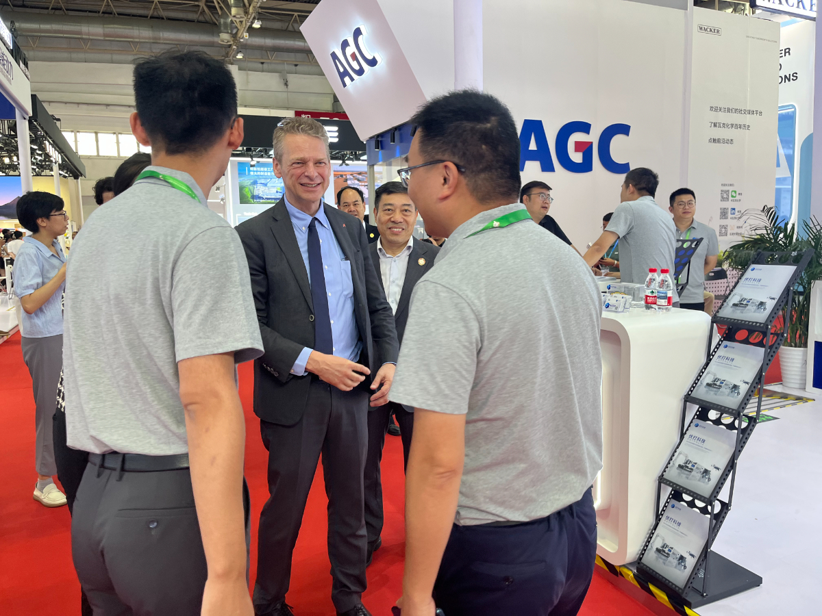 奧地利駐華使館商務處商務參贊樂思華,ADVANTAGE AUSTRIA Beijing (Austrian Embassy Commercial Section), Commercial Counselor Franz Roessler參觀伏打科技展臺。 高明娟 提供