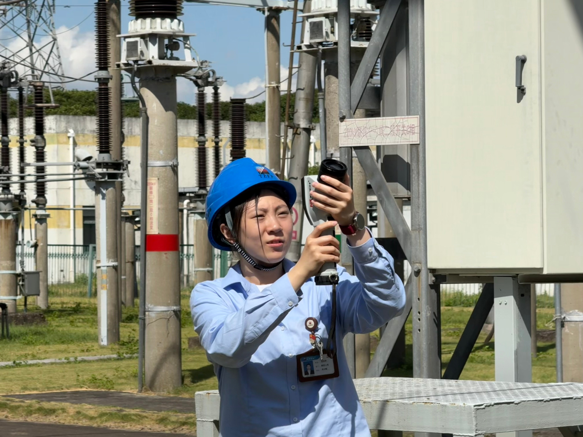臺(tái)州電廠維護(hù)部職工在升壓站測(cè)溫。 張艷瓊 攝