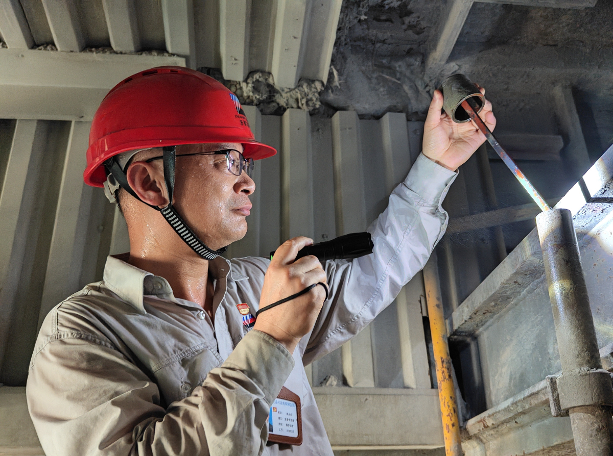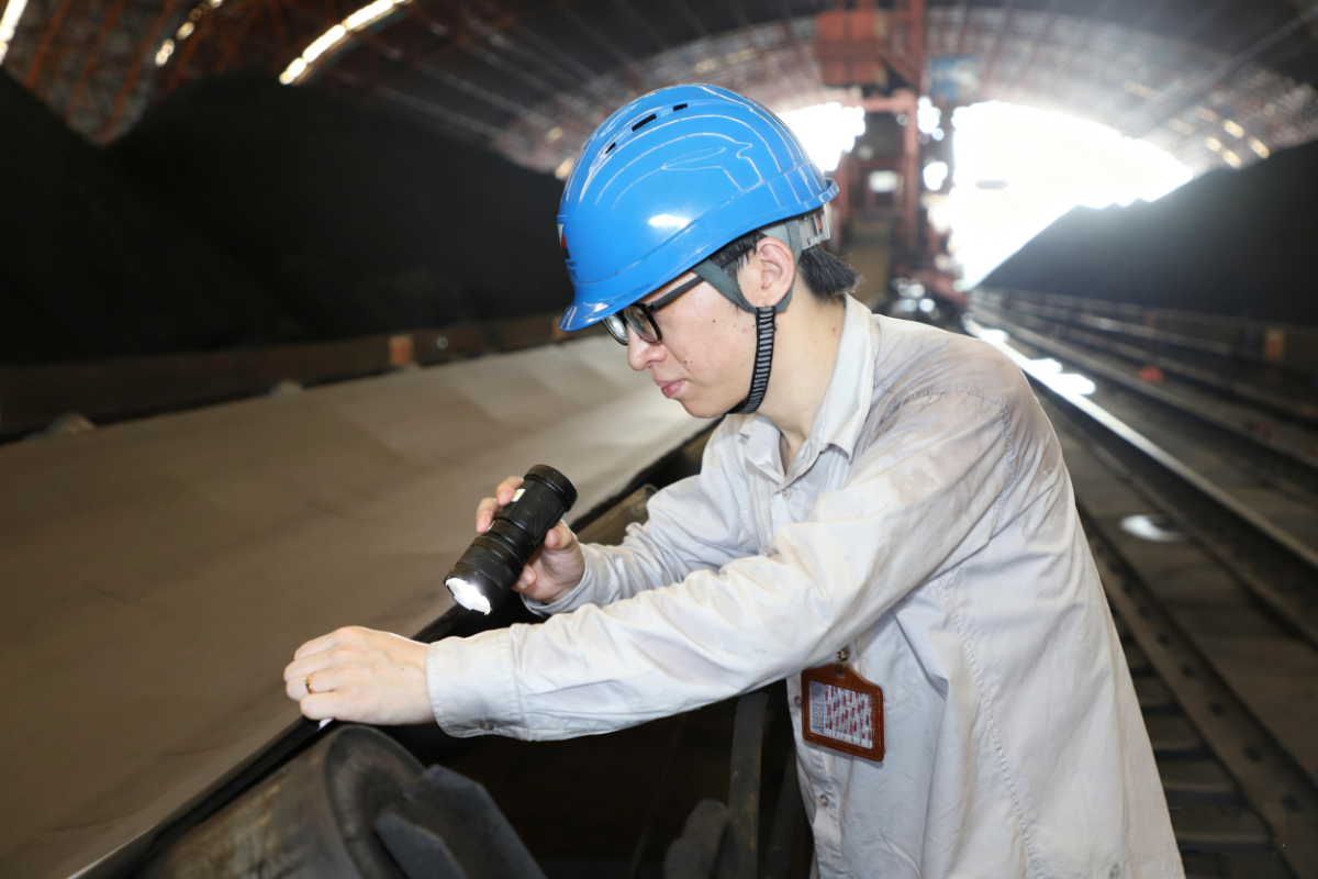 岑一洋每日深入現(xiàn)場(chǎng),以“時(shí)時(shí)放心不下”的態(tài)度緊盯關(guān)鍵環(huán)節(jié)。煤場(chǎng)內(nèi)悶熱不通風(fēng),在里面待上半小時(shí),人就像從水里撈出來(lái)一樣。在輸煤棧橋,岑一洋俯身仔細(xì)檢查16A皮帶邊緣的磨損情況。這條皮帶作為上煤“主動(dòng)脈”,在迎峰度夏期間幾乎不停歇運(yùn)轉(zhuǎn),承擔(dān)取煤入倉(cāng)和提升庫(kù)存的雙重任務(wù)。在難得的皮帶停運(yùn)間隙,他通過(guò)眼看、手摸等方式,不放過(guò)任何一處磨損隱患,確保這條“能源生命線”暢通無(wú)阻。