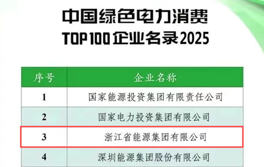 浙能集團(tuán)入選中國(guó)綠色電力(綠證)消費(fèi)TOP100企業(yè)名錄