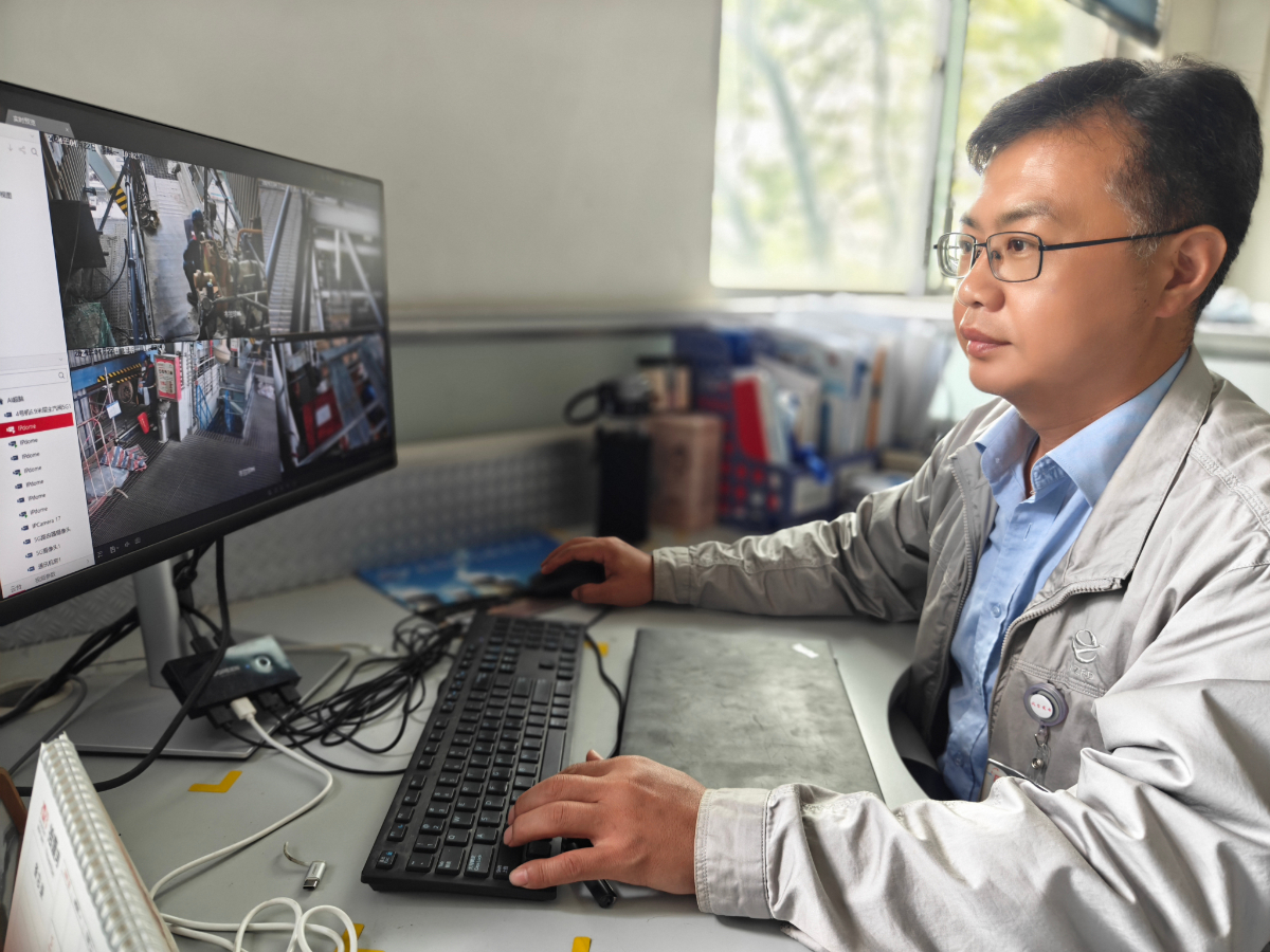 鳳電公司管理人員通過(guò)5G專網(wǎng)實(shí)時(shí)檢查現(xiàn)場(chǎng)作業(yè)情況。 王蒙 攝