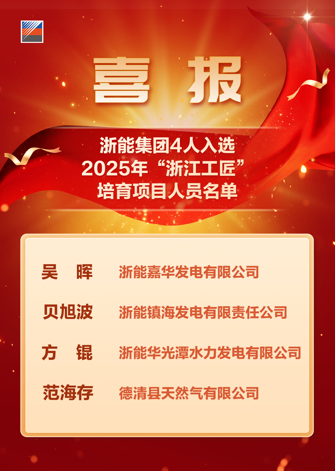 2025年“浙江工匠”培育名單名單出爐!浙能集團(tuán)4人入選