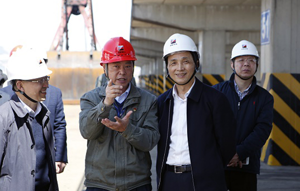 陳月亮一行在浙能港口公司調(diào)研卸船碼頭生產(chǎn)經(jīng)營情況。李晨 攝