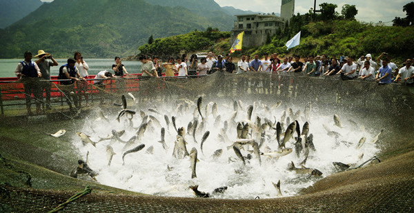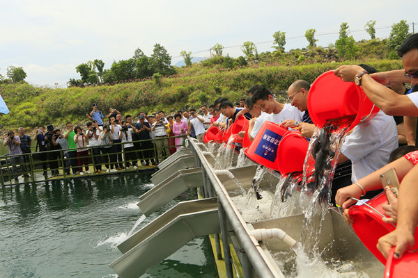 浙能北海水電“全國放魚日”2萬余魚苗放生千峽湖