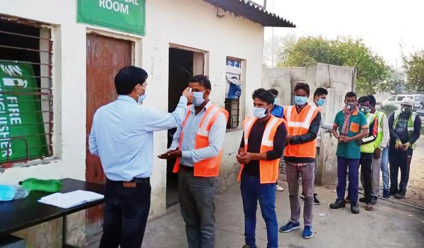 2020年3月20日,浙能錦江環(huán)境印度Beri Bagn 垃圾中轉(zhuǎn)站員工上班前,所有員工測量體溫合格后才可進(jìn)入工作區(qū)域。