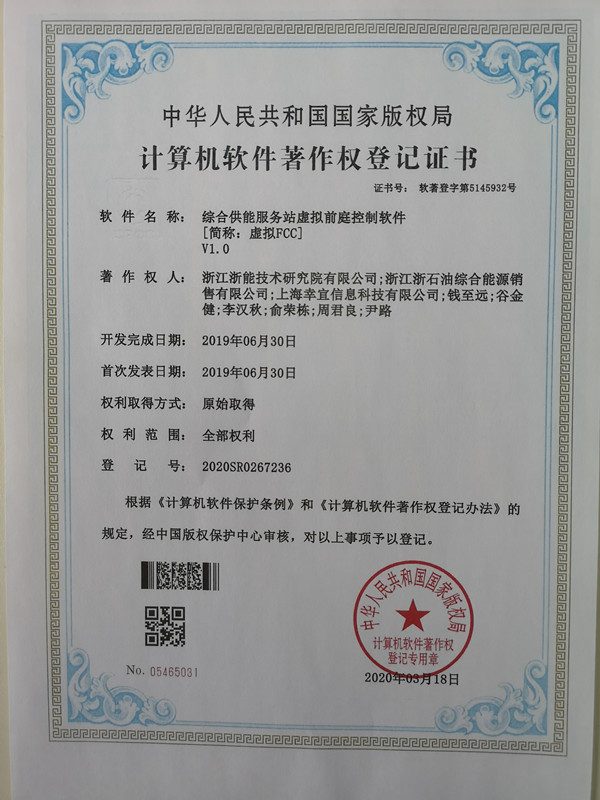 浙石油銷售公司科技項(xiàng)目獲得國(guó)家軟件著作權(quán)
