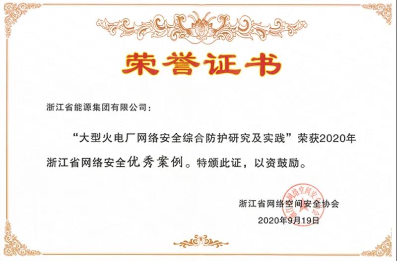 浙能集團(tuán)獲評浙江省網(wǎng)絡(luò)安全優(yōu)秀案例