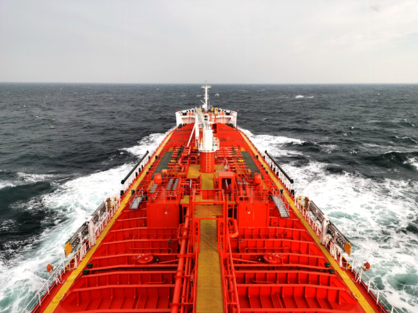 ▲ 9月14日,載運1.1萬噸0號柴油的“浙能油1”輪順利完成重載首航
