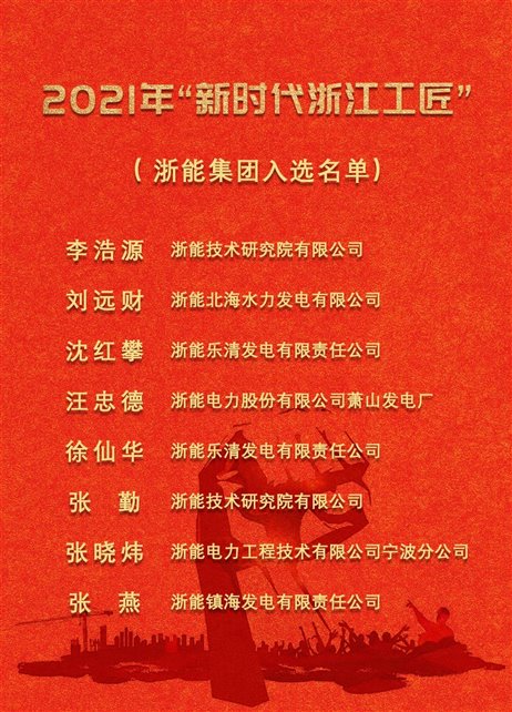 浙能集團(tuán)所屬紹興濱海熱電公司被授予2021年全國五一勞動獎狀,浙能所屬企業(yè)的8名員工獲2021年“新時代浙江工匠”榮譽(yù)稱號。