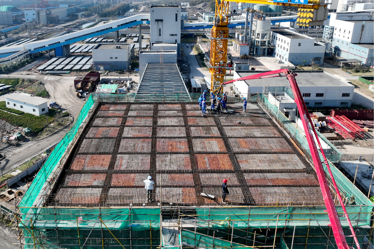 浙能六橫電廠二期工程實(shí)現(xiàn)碎煤機(jī)室屋面層封頂。 陳思穎 攝