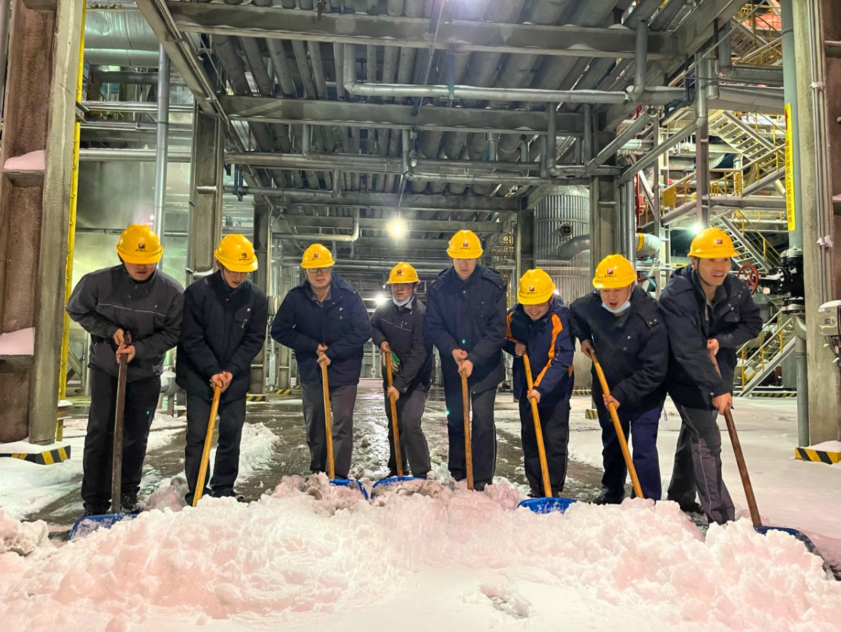 浙能新天煤化工員工清理裝置區(qū)內(nèi)積雪。 周國飛 攝