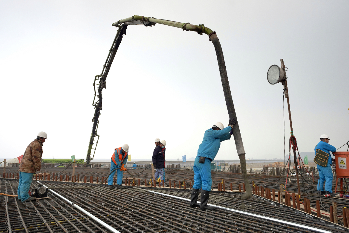 浙能六橫LNG接收站首罐承臺第一方混凝土開始澆筑。 周衡平 攝