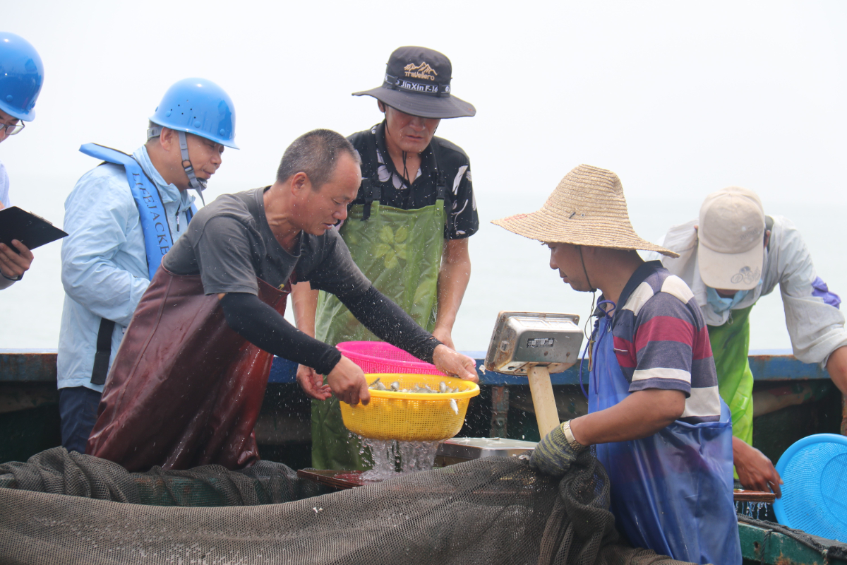嘉海風電場人員正在進行增殖放流。 張露 提供
