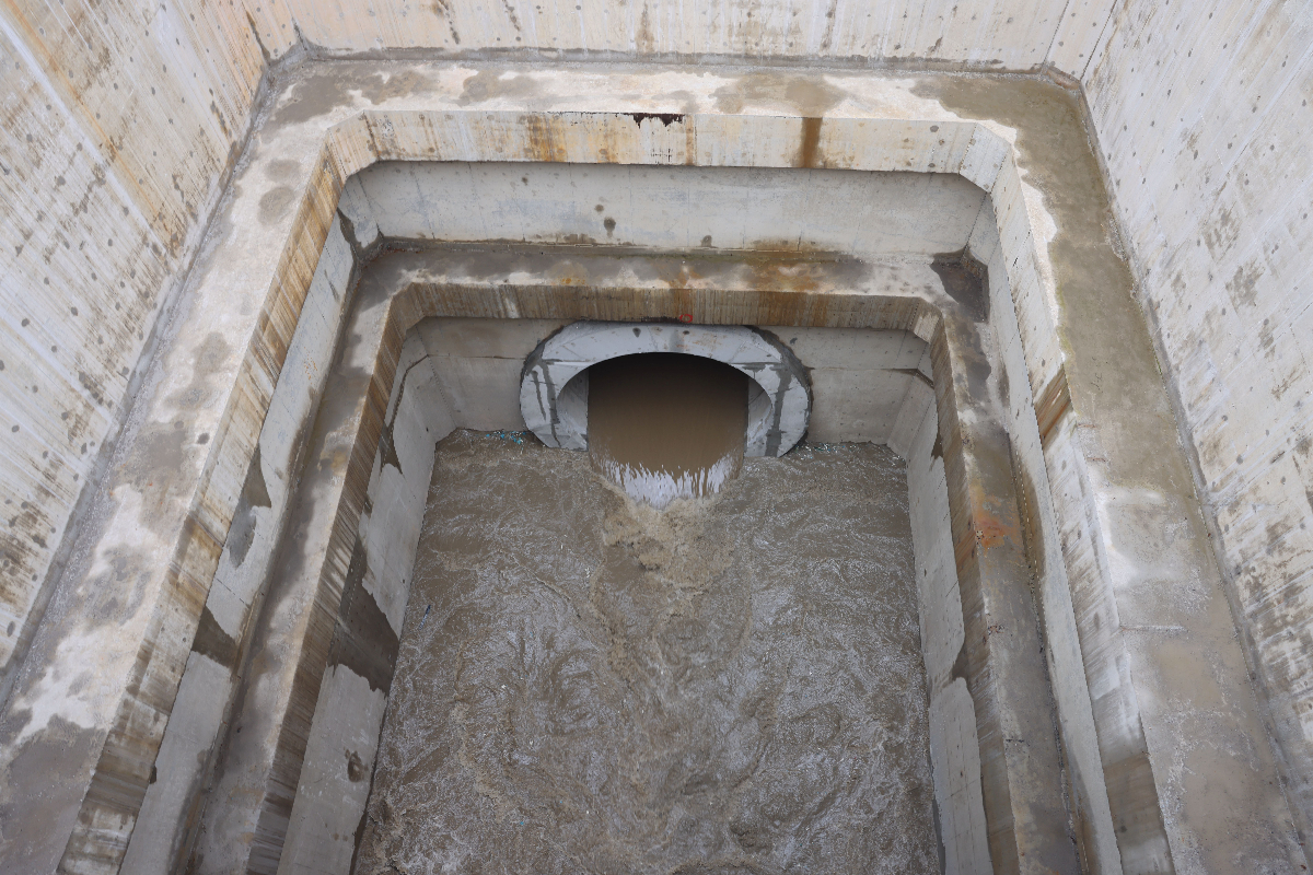 循環(huán)水排水隧道通水時(shí)場(chǎng)景。 陳思穎 攝