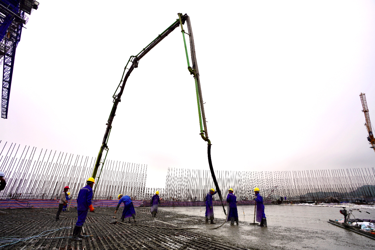 浙能六橫LNG接收站1號(hào)儲(chǔ)罐承臺(tái)正在進(jìn)行混凝土澆筑。 周志南 攝
