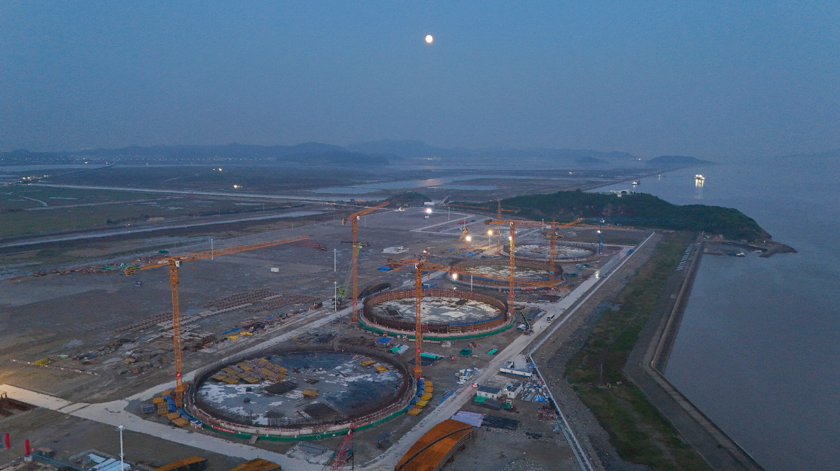 月色下的浙能六橫LNG接收站項(xiàng)目建設(shè)現(xiàn)場(chǎng)。 周志南 攝